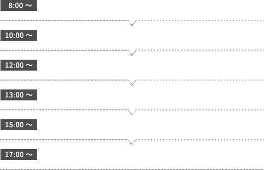 | 休日 | 日曜日 年末年始 GW 夏季 雨で休みになることもあります |